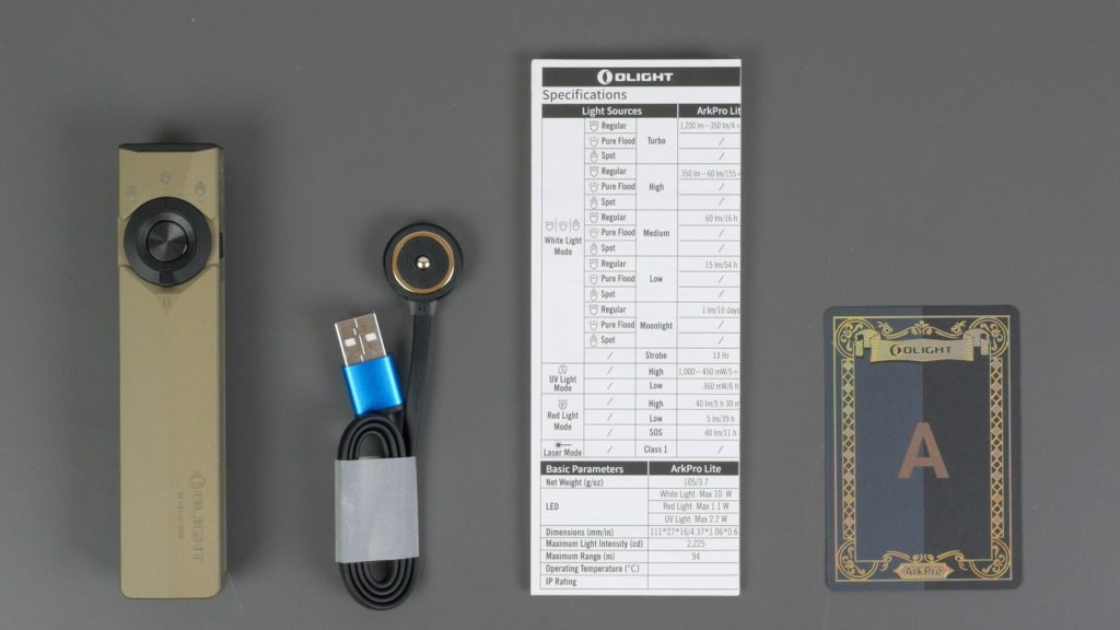 The Ultra comes with Olight’s magnetic charging cable, the instruction manual and a UV test card in the box.