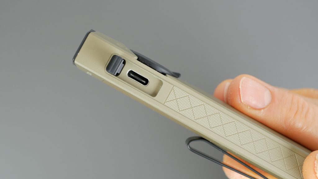 Probably the most exciting upgrade for me with the new ArkPro series is USB-C charging. And like their newer Oclip torches, there’s a hinged metal flap that reveals the USB-C port. So much more preferable than the typical fiddly rubber flap. The cover stops muck getting in but the torch has an IPX7 waterproof rating even with the flap open.