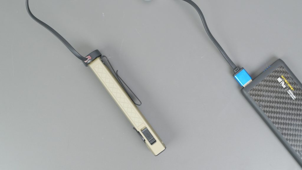 You can still charge the torch using the supplied magnetic cable which works great when you’re at home. But it’s an extra cable to remember when you’re travelling. And charging is quicker over USB-C although Olight doesn’t include a USB-C cable in the box. I charged the torch with its integrated 2000 mAh battery, from completely flat in 1 hour 34 minutes.