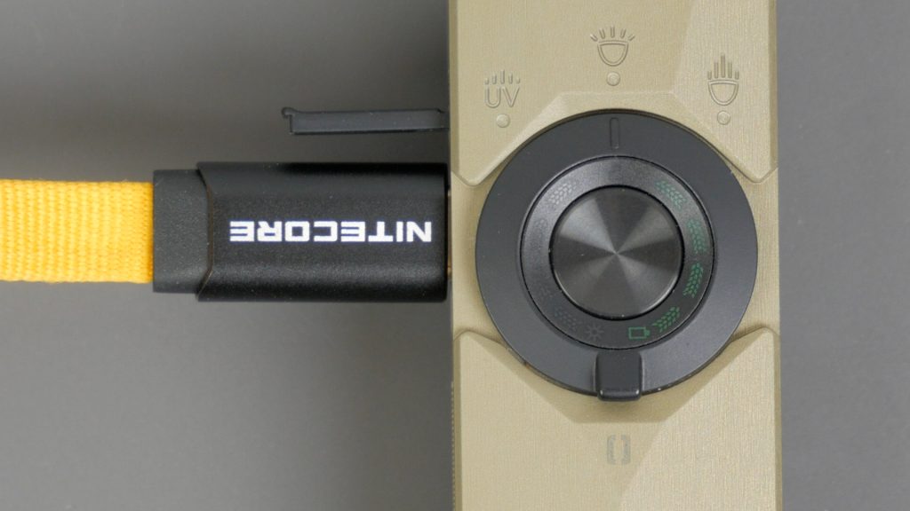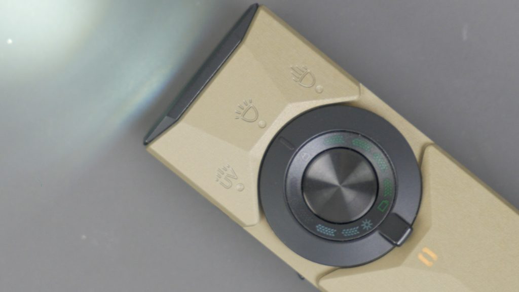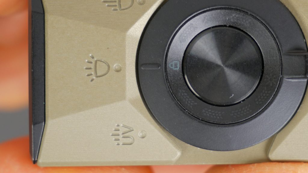 Below the switch is the light mode lever to select between UV, Flood and Spotlight. That’s a key difference on the Lite model – it swaps the Spotlight Mode for a Red Light mode.