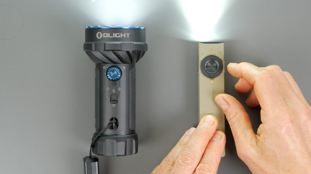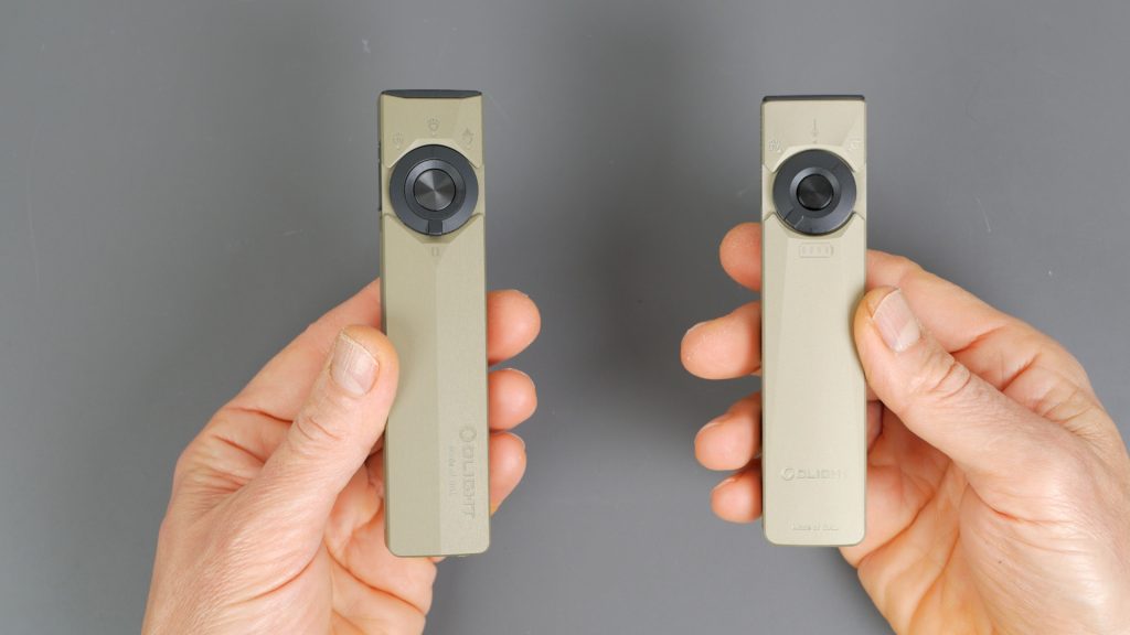 In the hand the torch feels very comfortable. The new central switch is larger and recessed compared to earlier models, and your thumb naturally settles on it in a normal grip. The top of the torch also has a slightly raised ridge, which Olight says adds structure and depth. Compared to the ArkField Pro Ultra, which is completely flat on top, it does feel a little more comfortable — though that’s partly because it’s slightly longer.