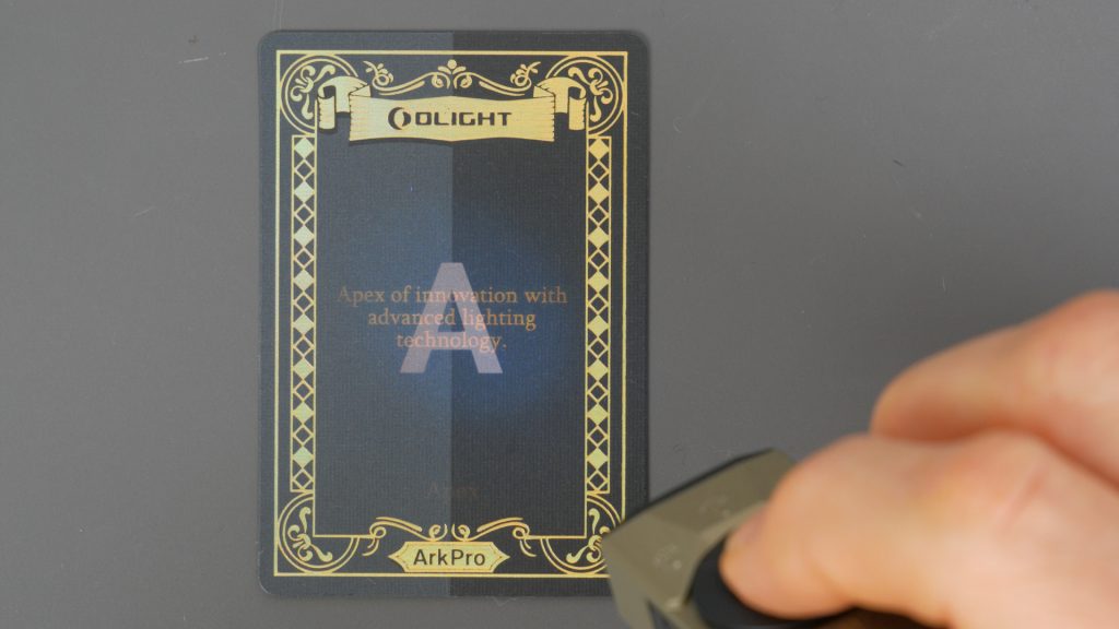 I personally don’t use the UV light very often, but the high mode is brighter than most and has a decent range. I’ve used UV before for checking bank notes and I tested it on my multitool to bring out the fluorescent spacers, which worked well. Olight also supplies a test card to reveal a secret message.