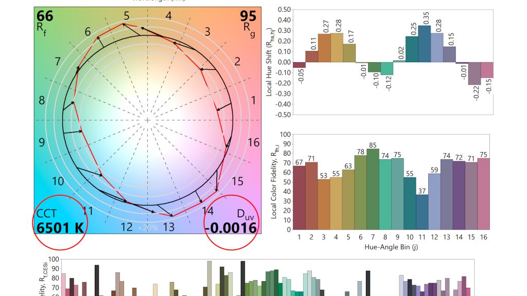 The spotlight is the same as on the Pro – I measured 6755K and very low Duv in Turbo, but at the lower output levels the Duv shifts more positive, giving a noticeable green tint.