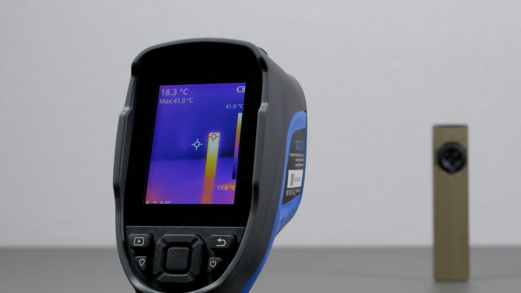 I did measure the temperature of the torch with my thermal imaging camera and the head got to only 41°C before dropping down in brightness.