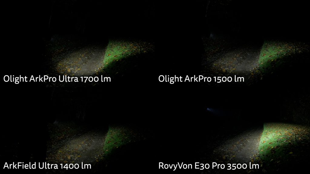 I tested the white light modes outdoors and compared it to the 1500 lumen ArkPro, 1400 lumen Arfield Ultra and the 3500 lumen RovyVon E30 Pro.