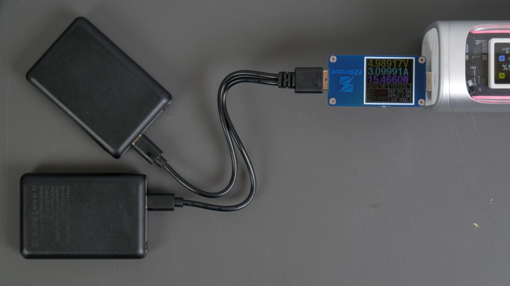 Using a capable charger, I saw around 15W total when charging both batteries together. For the fastest results, I charged each battery separately using a USB-C to USB-C cable at around 10W each. From completely flat, a full charge took just over three hours per battery – which is pretty good.