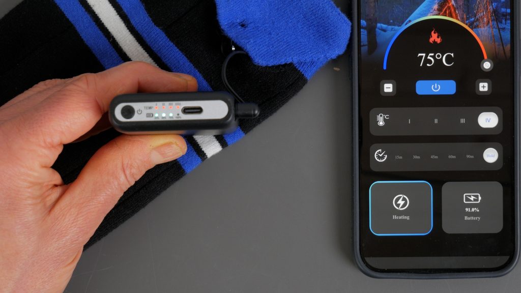 But overall if you get cold feet these socks might be a life saver – and if you can pick them up for the price I paid they’re a bargain. These are the socks I bought, but since these generic Amazon brands come in and out of stock regularly this is a link to a few other options. Try and find some with at least 5000 mAh batteries, USB-C charging and although not vital the smartphone app is quite useful.