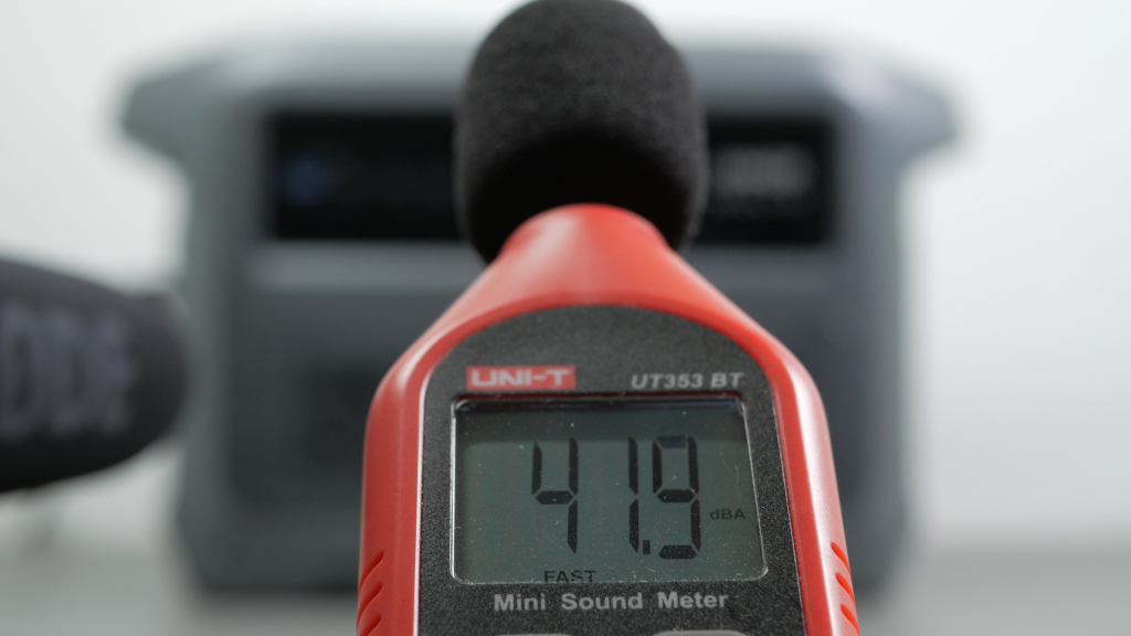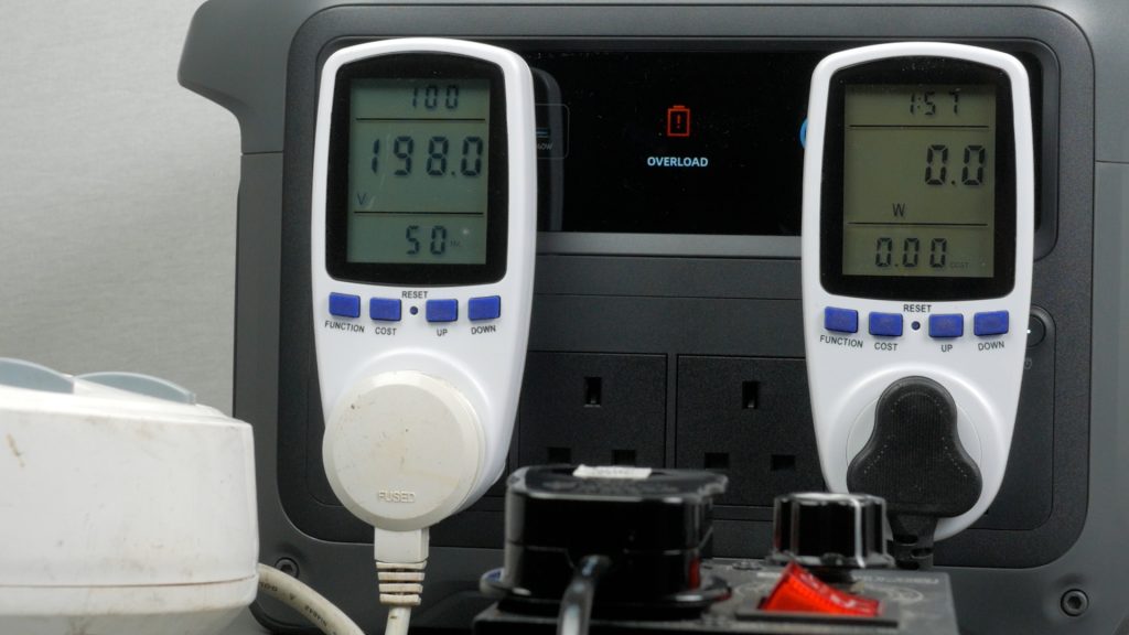 With a constant 1kW resistive load from an electric heater and an energy monitoring plug, I measured the usable capacity of the 1024Wh battery of the power station. It ran for just over 54 minutes and used 907 Wh. That’s 89% efficiency which is a very good result. I did try running this test with the heater at 2kW but the power station overheated after 26 mins. The heater was a little close to the power station which wouldn’t have helped.