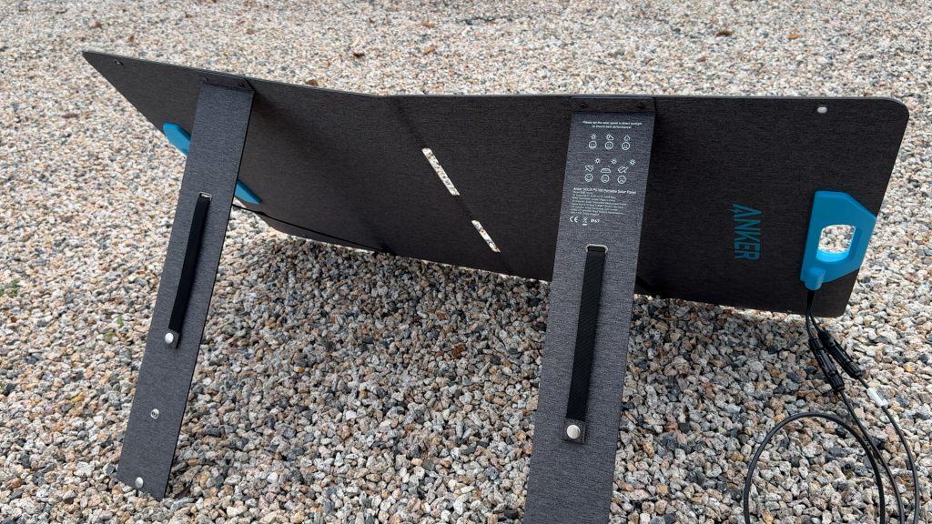 Finally the Anker has an integrated MPPT controller for solar charging at up to 600W. I tested solar charging with their PS100 100W portable solar panel. This comes with an MC4 adapter cable to connect straight into the power station’s XT60 input. It’s a modest output for a solar panel, but that does make it fairly lightweight at 4.7kg. And together with its compact size and large carry handle it’s extremely portable and quick to set up. Magnets keep it folded and it takes less than a minute to open it up and adjust the integrated feet for the best view of the sun. It also has an IP67 waterproof rating which is great to see.