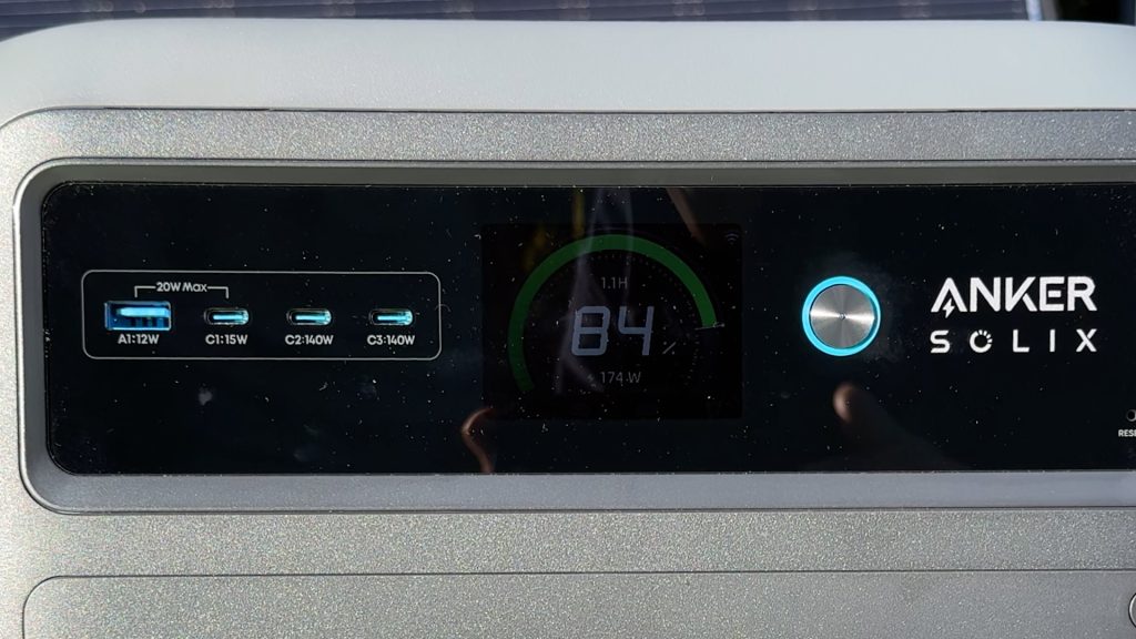 Unfortunately there are no wireless charging pads on the Anker. These have become less popular on power stations which is a shame – there’s certainly space for at least one on top of the unit which would be very handy.