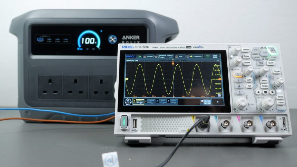 There’s a generous 4 outlets in the UK, 5 in the US, all with a pure sine wave output important for sensitive electronics, which I confirmed with my oscilloscope.