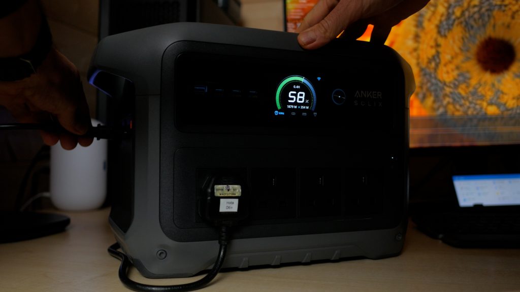 Like most power stations, the Anker has a UPS or uninterruptible power supply mode. When AC devices are connected with the power station plugged into mains power, those devices bypass the internal battery and run directly off the mains. If there’s a power outage, the switchover to battery power occurs almost instantly – within 10ms on the Anker which is as fast as DJI and Bluetti.