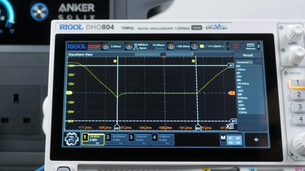 There’s a very clean break as the battery switches over and the transfer time was less than 10ms as spec’d.
