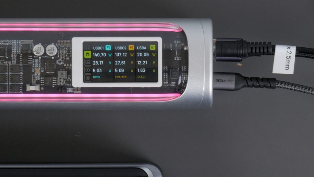 The power bank charged from completely flat in an hour. It briefly hit the full 140 W, but quickly dropped back to around 100 W for most of the charge which is slightly disappointing